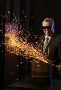 A very-busy IPG Photonics CEO Valentin Gapontsev, only had a couple of minutes for this portrait. So, I arranged to have one of his techs demonstrate how to use one of Photonics’  20,000- watt fiber lasers. Setting this up with the tech, and doing test shots with the PR as a stand it took me about 45 minutes. However, it was only when I had everything ready to go that I brought the CEO to stand where I wanted to photograph to happen. In the end, he only had to pose for me for 10 minutes and this pleased him very much for I had respected his busy schedule.
